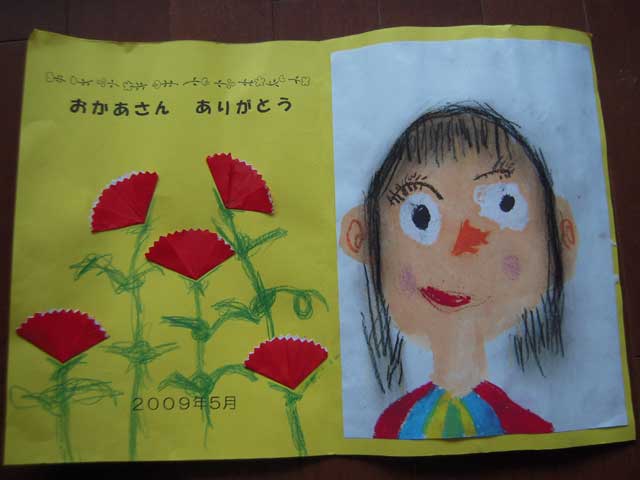 幼稚園から、おかあさんの絵を持って帰ってきました。