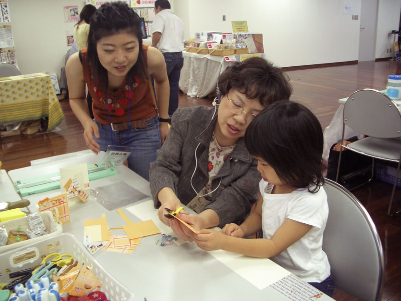 私を含めて3人で、会話もなく、さみしい感じでした。雨の中だったので余計に暗く感じたのかも...。クラフト大好きですー♪みたいな人が来るのかと思っていたのにな。うちの教室の方が、わいわいしてていいなぁ〜。お子さまも一緒なので、どうしてもにぎやかになるんです。
