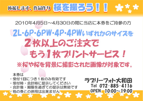 ただいまラブリーフォトでは、春にちなんだプリントサービスを実施中です!
